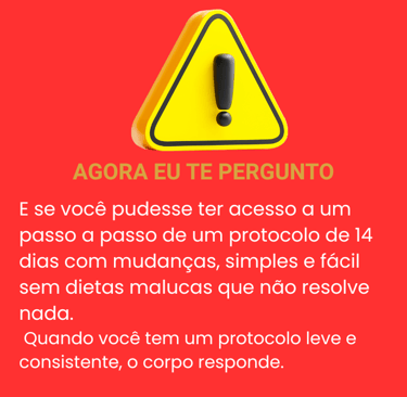 Você vai ser ensinada a seguir um protocolo eficaz, que não promete dietas malucas e sim respeitando o seu corpo nesses 14 dias.